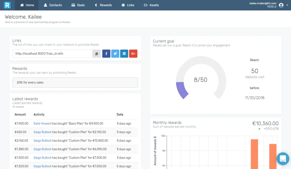 Resels is an all-in-one referral software. Our mission is to help you acquire more customers with the power of word-of-mouth.